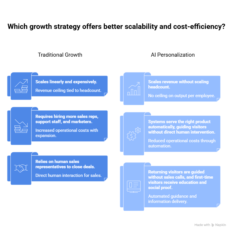 Basic segmentation groups users by static traits such as demographics or past purchases. AI personalization adapts in real time based on live behavior, session signals, browsing patterns, and intent indicators. It continuously updates what a visitor sees instead of assigning them to a fixed category.
